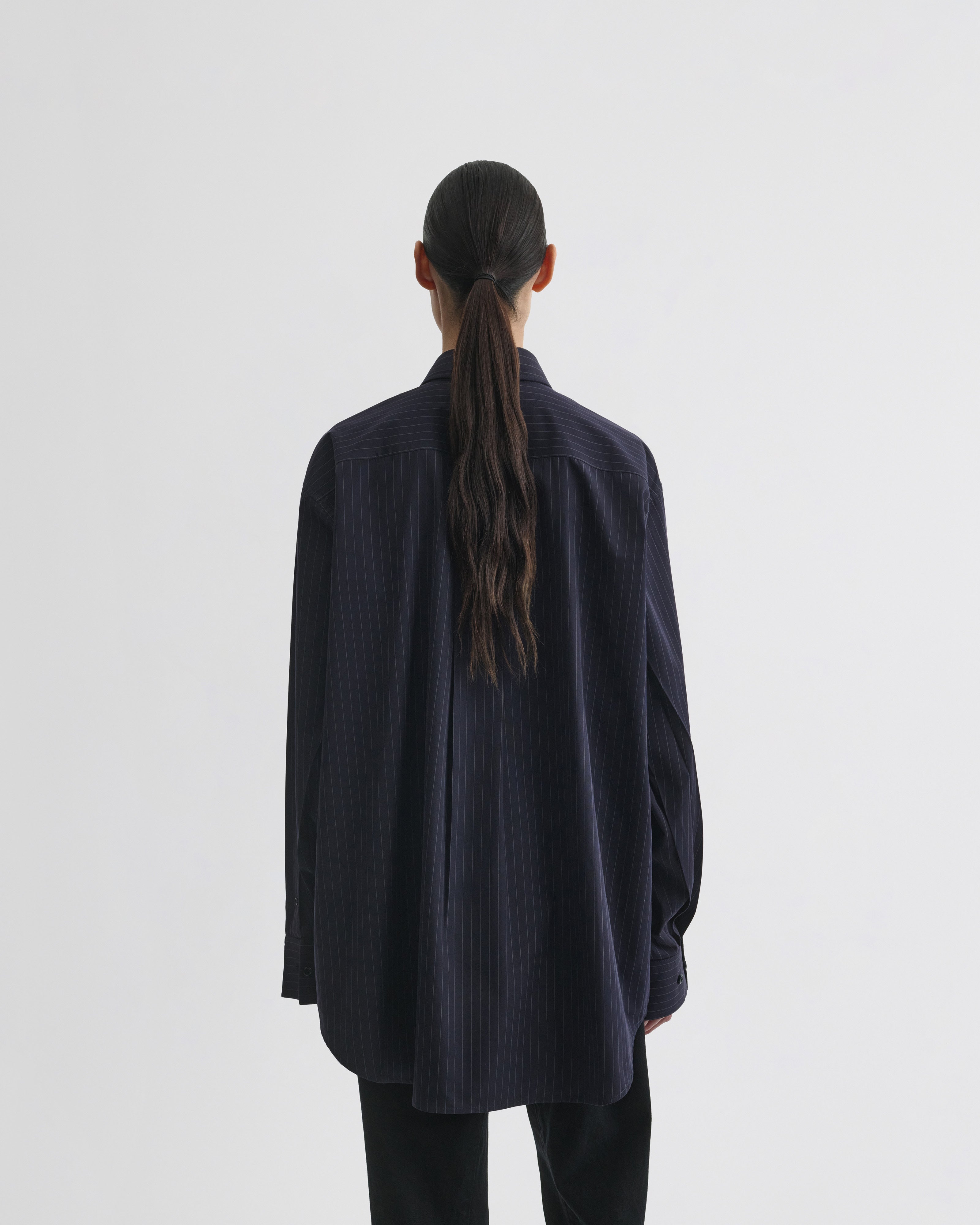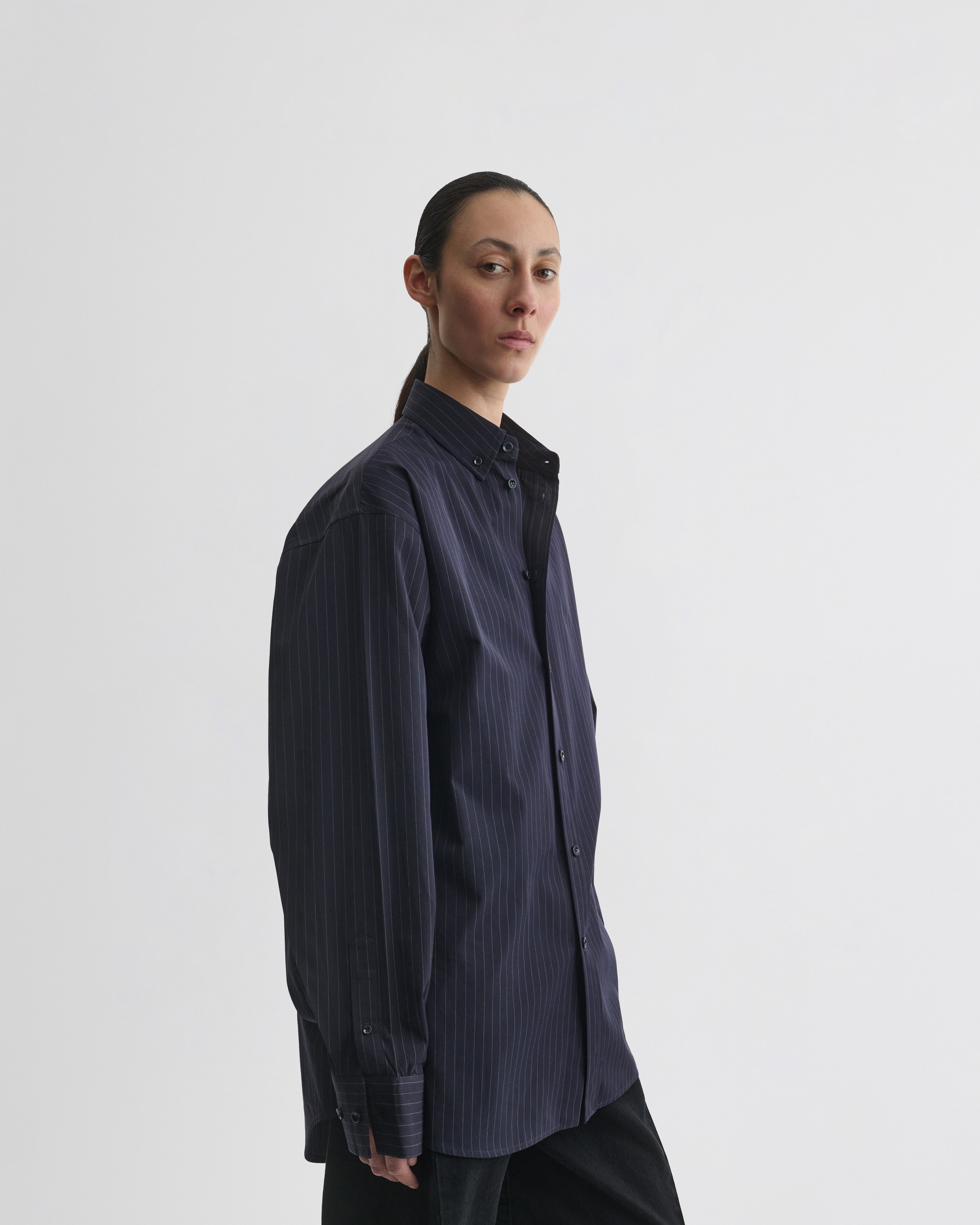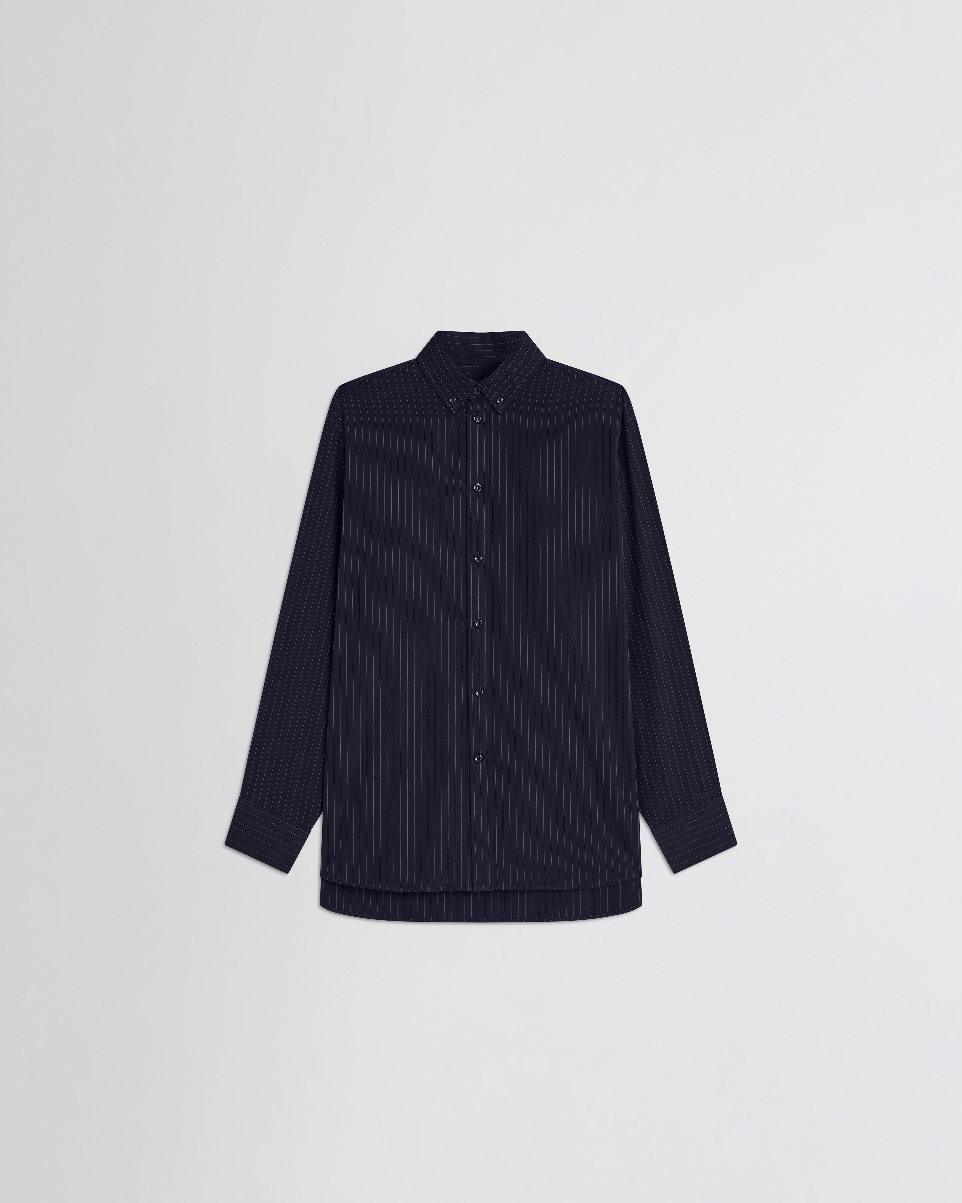 BUTTON COLLAR SHIRTin midnight pinstripe cotton