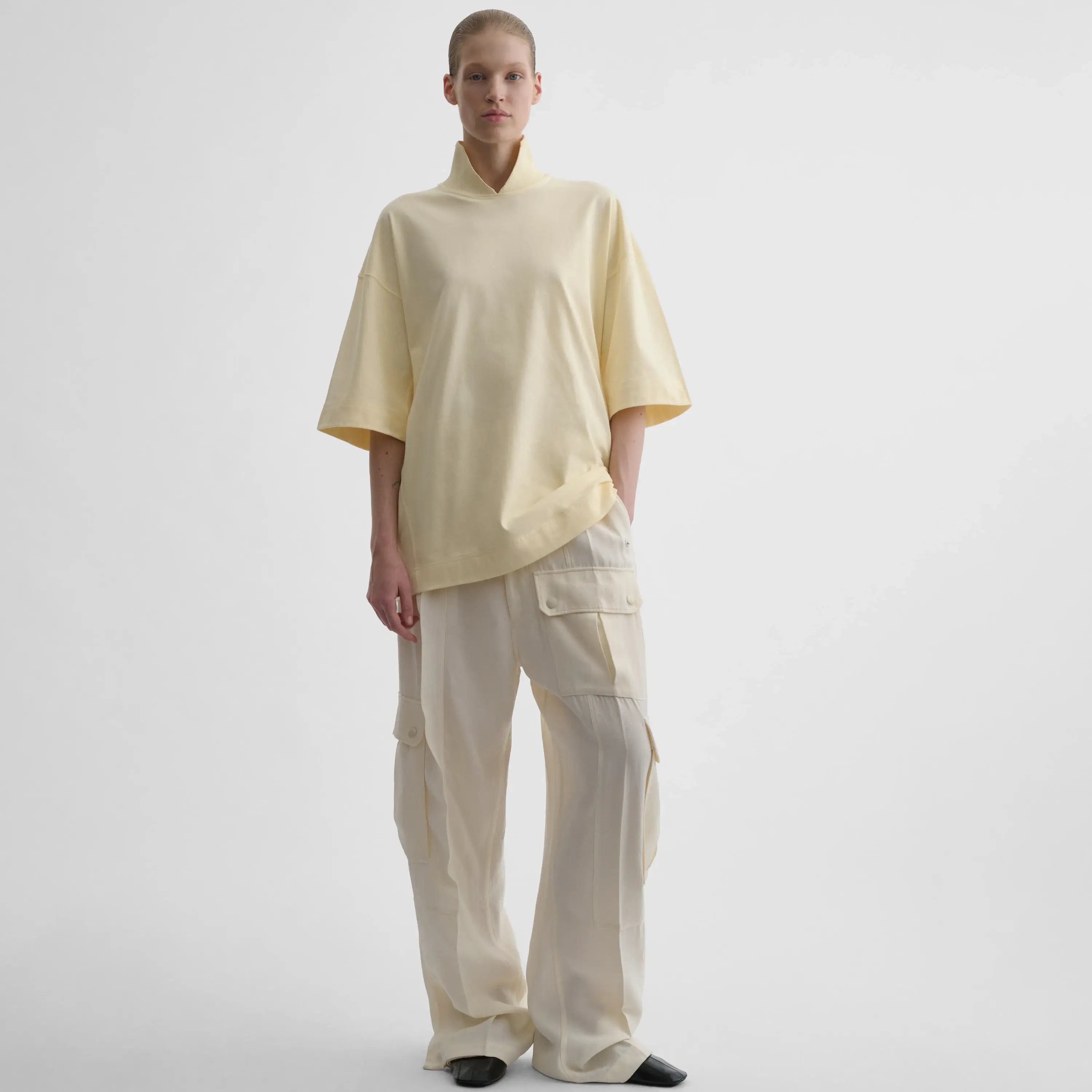 CUT COLLAR T-SHIRTin cream cotton