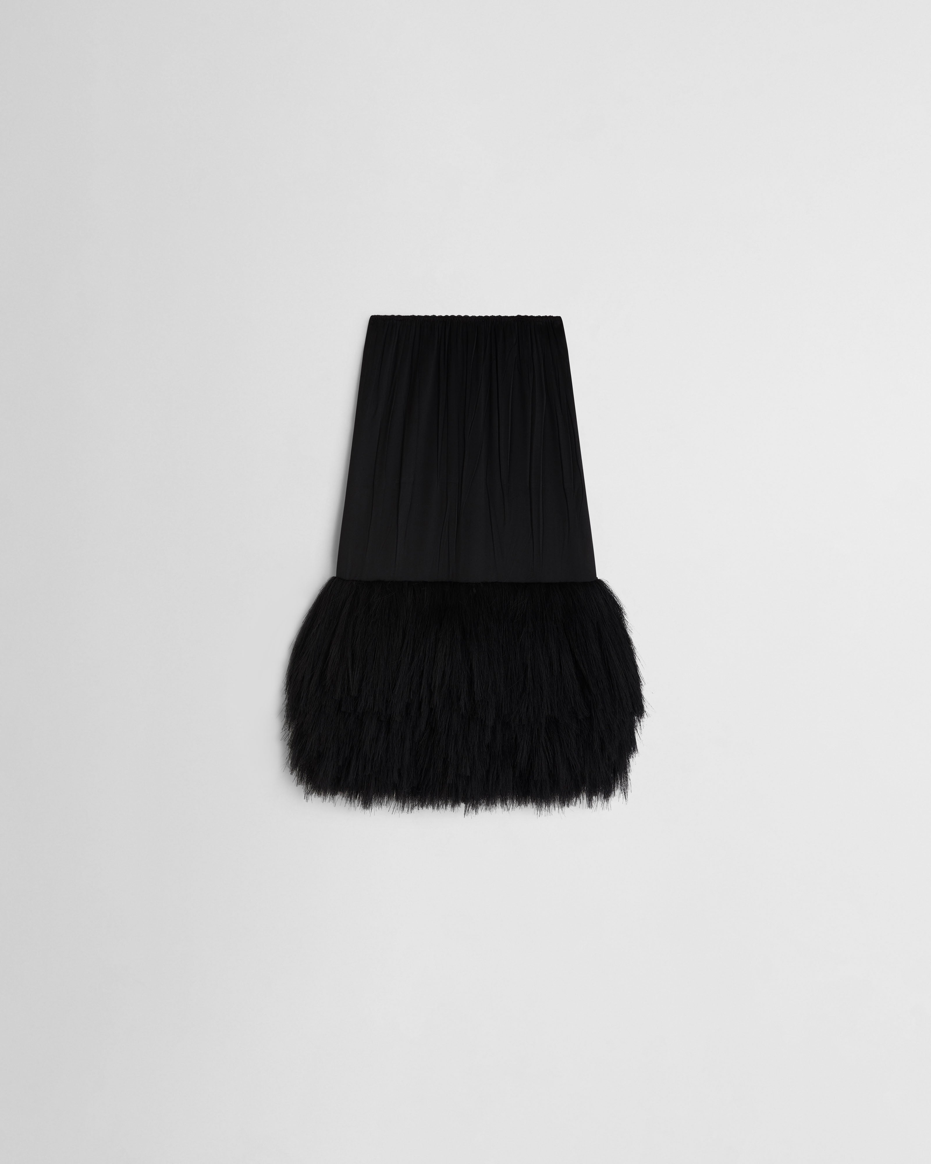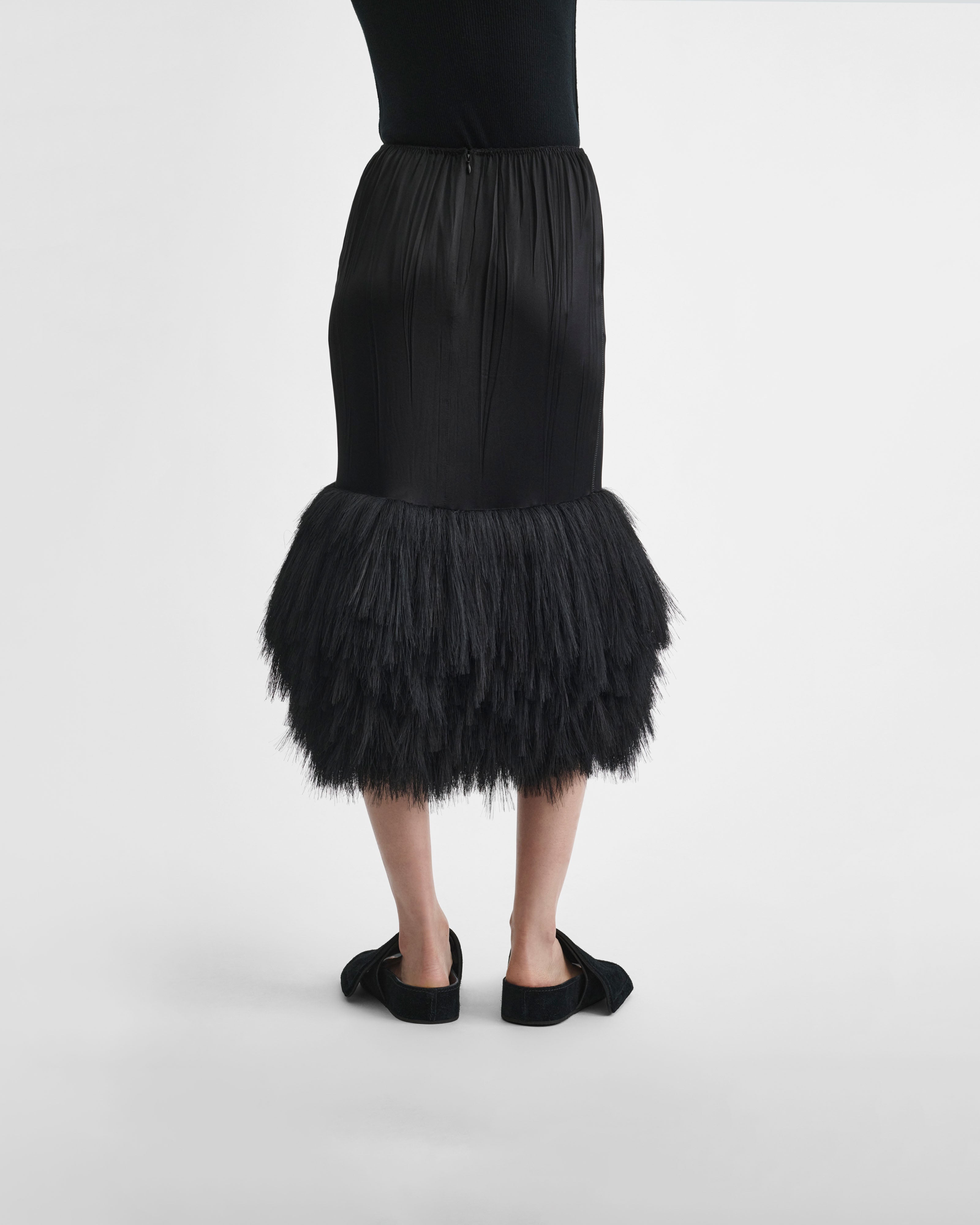 FRINGED SLIP SKIRTin black silk