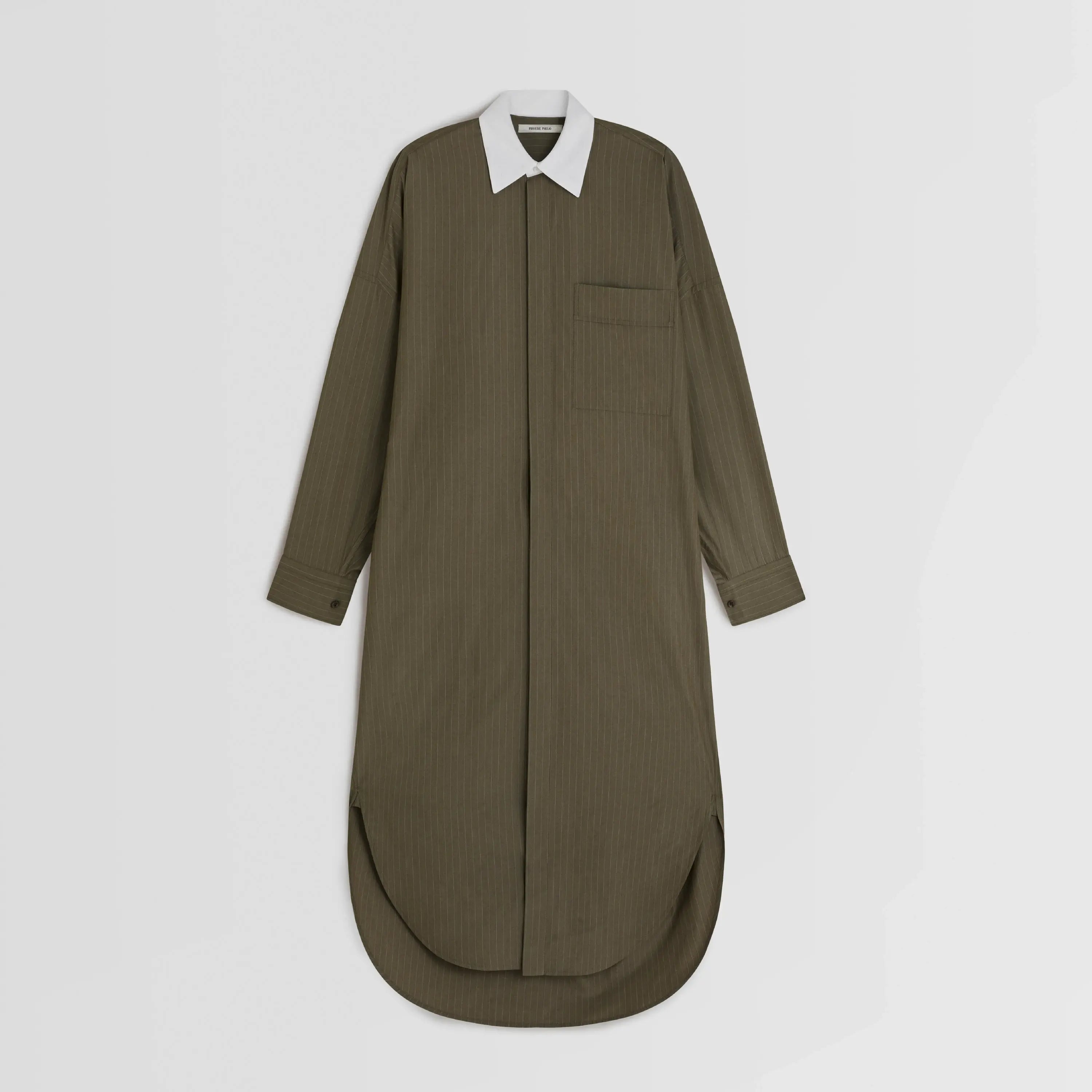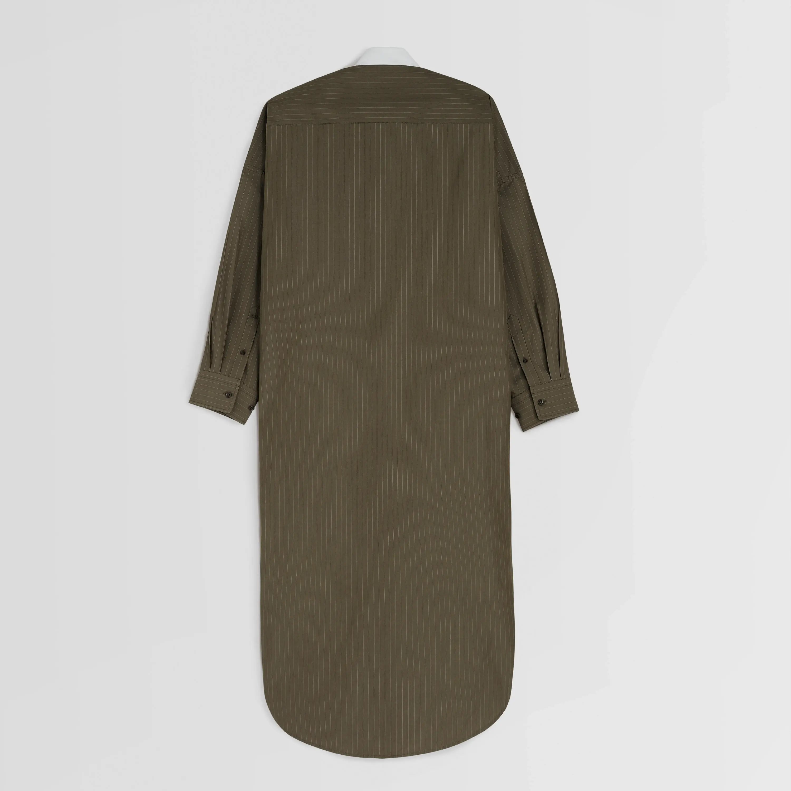 LONG SHIRT DRESSin tobacco white pinstripe cotton