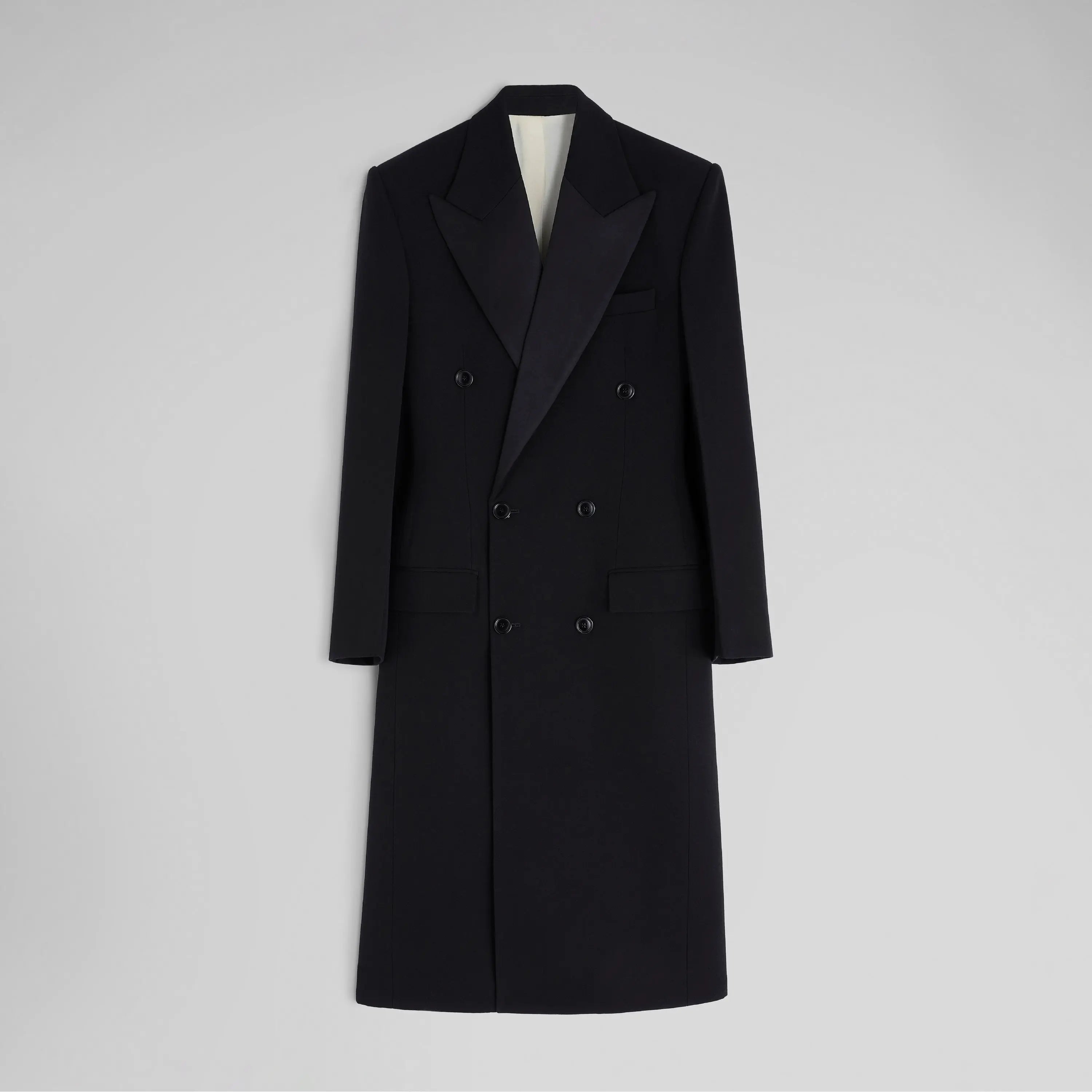 TAILORED COAT WITH DROPPED WAISTin black wool