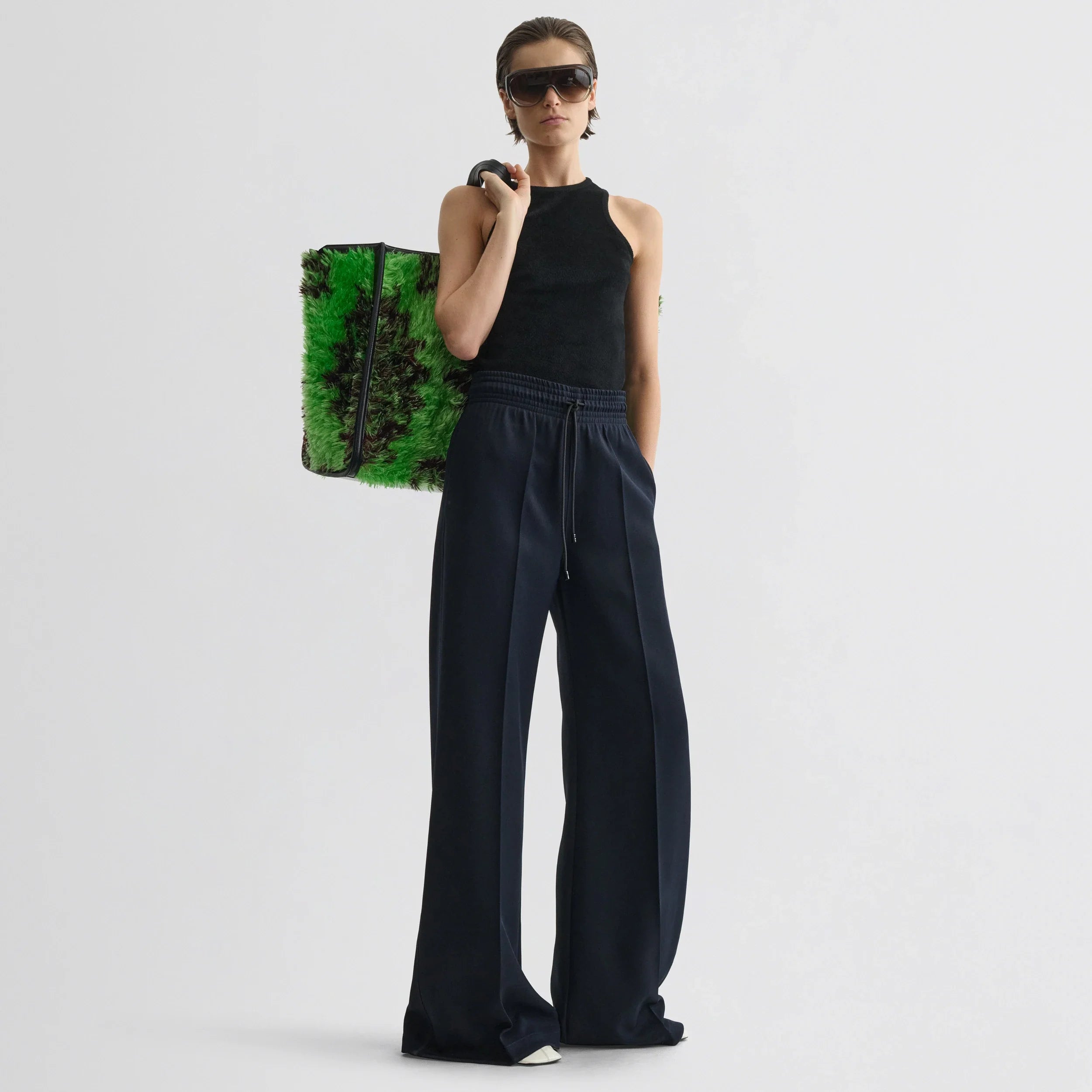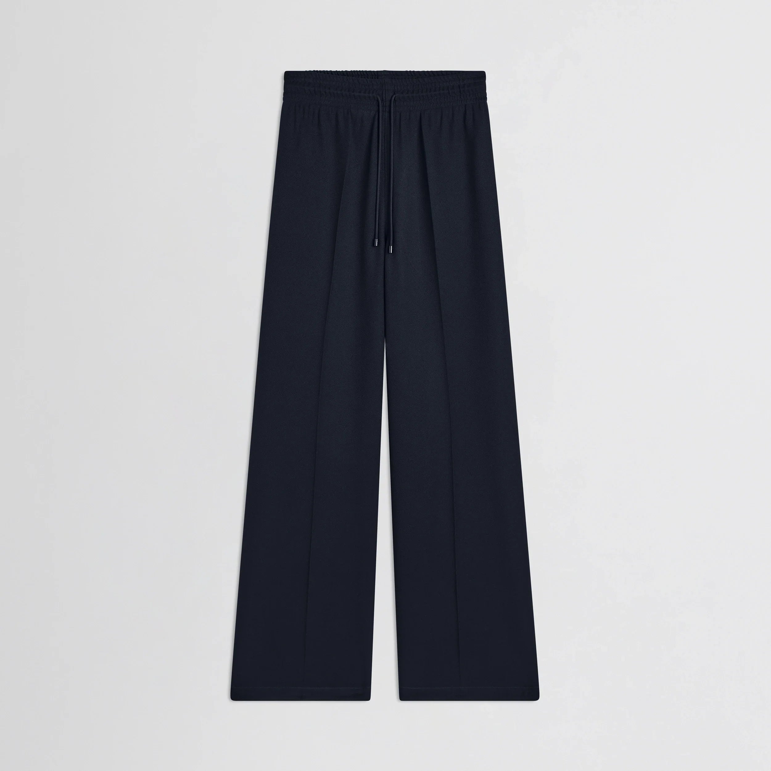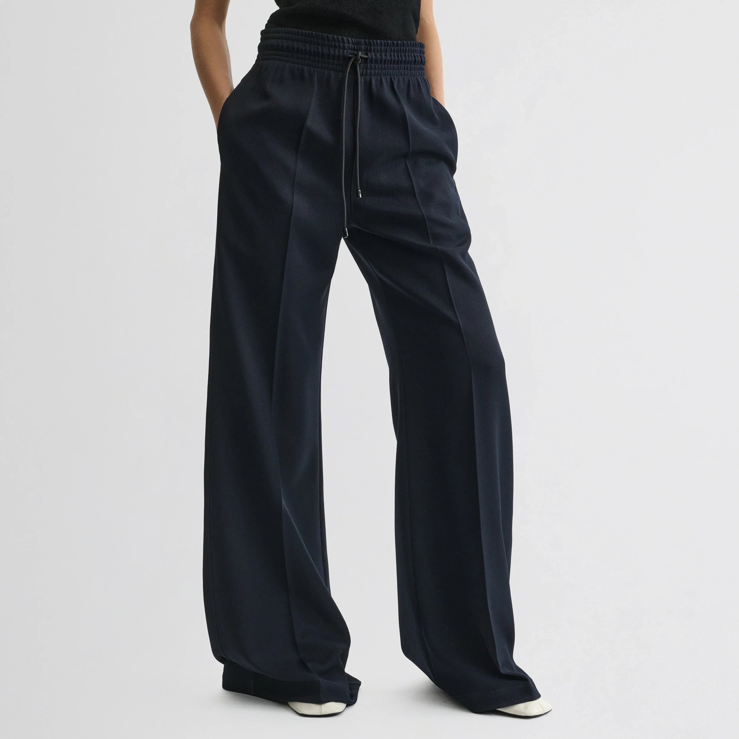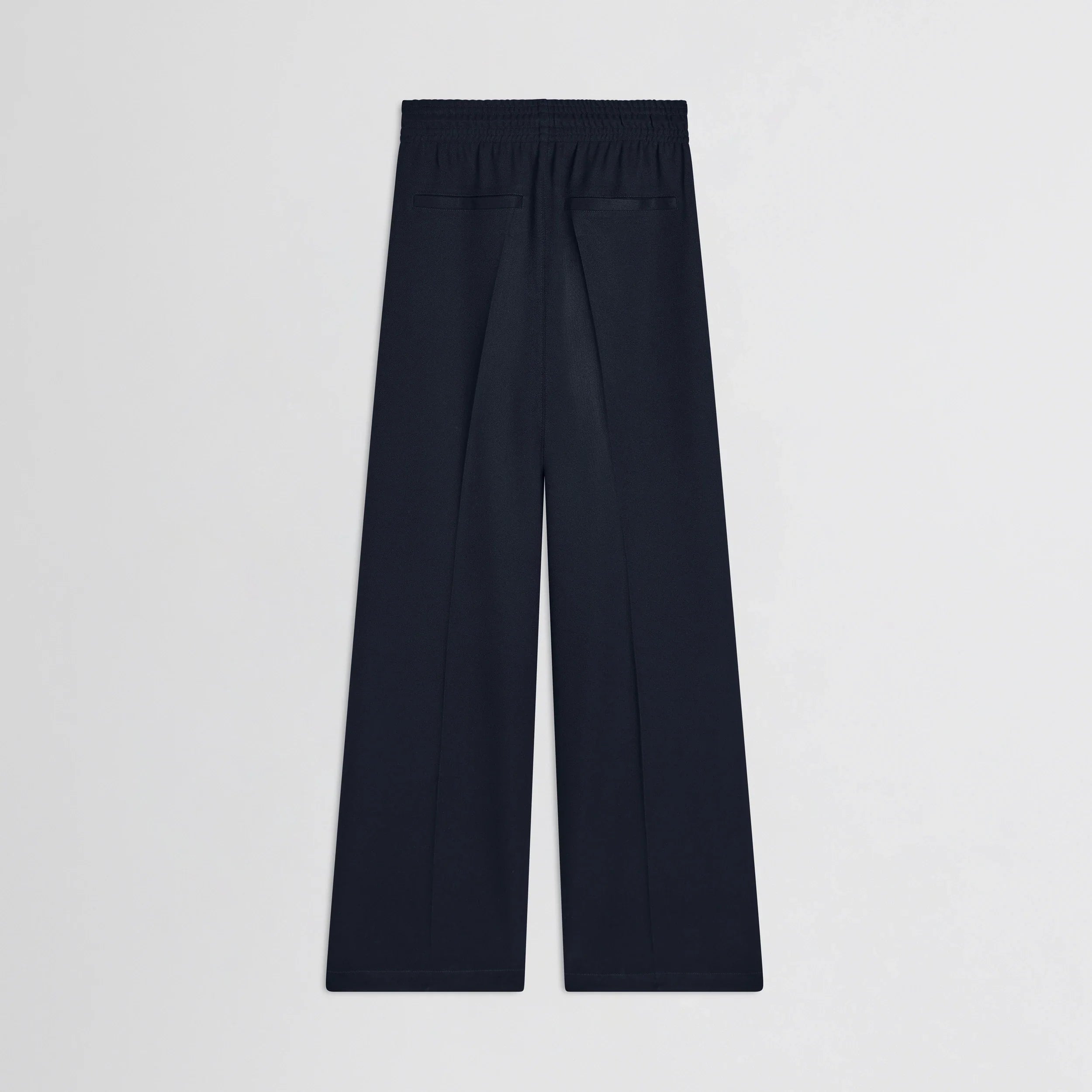 Track trousers in navy technical fabric. Designed for a relaxed fit, the elevated joggers are wide in the leg with an elasticated, drawstring waist. In a barathea weave, the fabric has a fresh, sporty hand.
